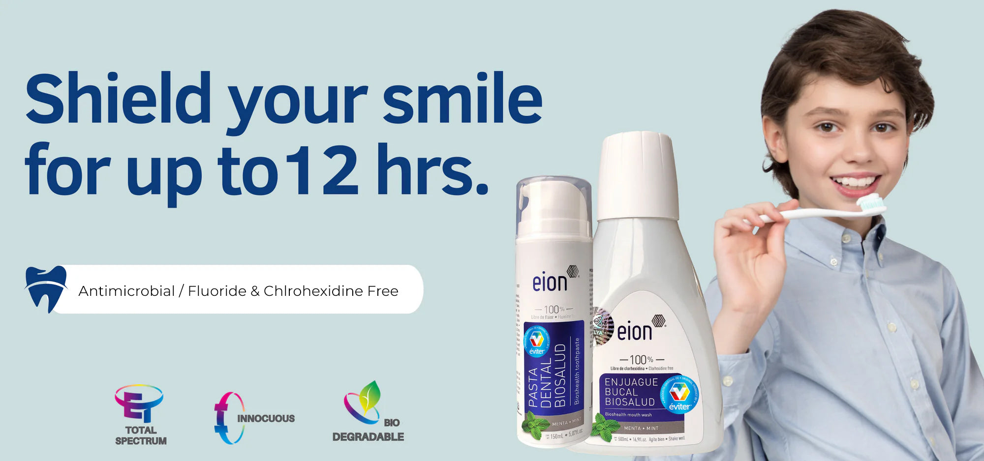 "Thanks to its patented nano bio molecule, Eion by Éviter mouthwash and toothpaste keep your mouth clean and free from germs that can cause cavities, bad breath, or any type of infections."